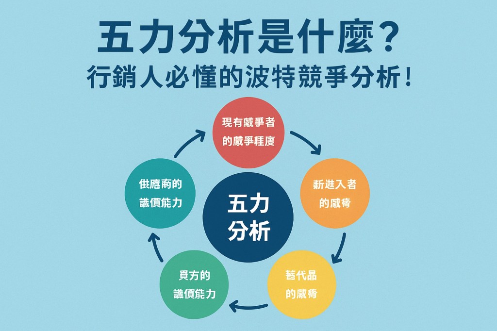 本文將帶你深入理解五力分析的定義、五大要素、應用方式與實務案例,並探討其優點與限制,幫助行銷人在激烈的市場競爭中找到突破口。